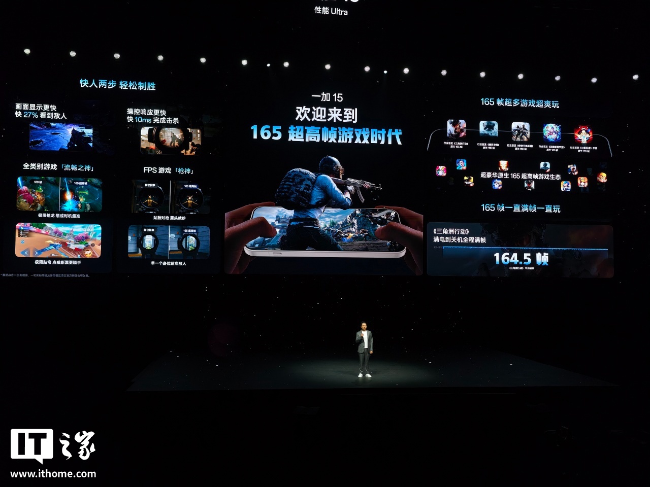 一加 15 手机全球首发 165Hz 极速高刷,画面显示快 27%、缩短手机的响应时间达 10ms,支持更精准、更快捷的操作,适配《三角洲行动》《暗区突围》《使命召唤手游》《英雄联盟手游》《火影忍者》手游等头部电竞手游原生 165 帧。同时,一加 15 手机还向下兼容原生 144 帧、120 帧及以下帧率。